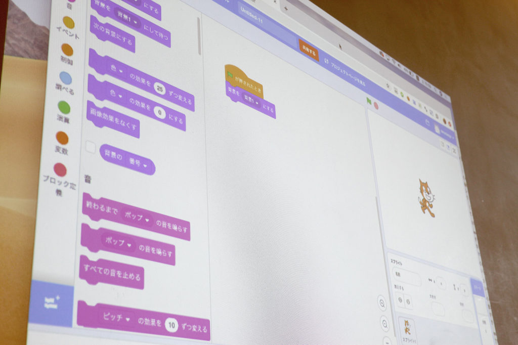 Scratchは、子どもたちがプログラミングを楽しく学べるビジュアルプログラミング言語です。小学校の授業でもよく利用され、カラフルなブロックをマウスでドラッグアンドドロップしてつなげることでプログラムを組み立て、ゲームやアニメーションを作成することができます。