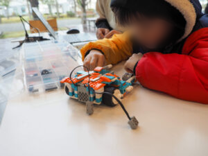 CoderDojo岐阜には、LEGOの教育用プロダクト「LEGO WeDo2.0」や「LEGO Mindstorms EV3」も用意されています。自分で組み立てたLEGOにPCやタブレット端末で設定したプログラミングを繋げて、LEGOに自分の思うように指示を与え動かす体験ができます。