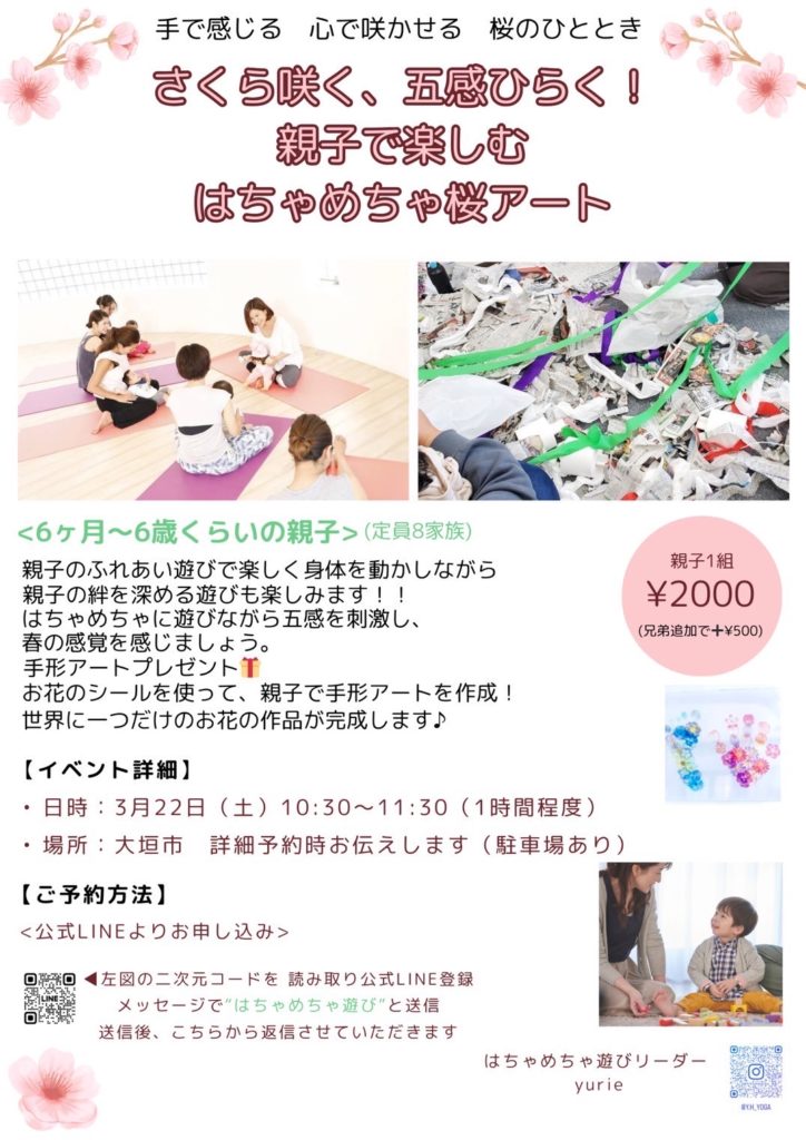 「はちゃめちゃ遊び」は、子どもの好奇心を引き出し、非認知能力を育てるための特別な活動です。親子で楽しむことで、共感力や絆を強化しながら、子どもの成長をサポートすることができます。ぜひ、今回開催される『桜咲く、五感開く 親子で楽しむ はちゃめちゃ桜アート』に参加してみて、子どもと共に特別な時間を過ごしてください。