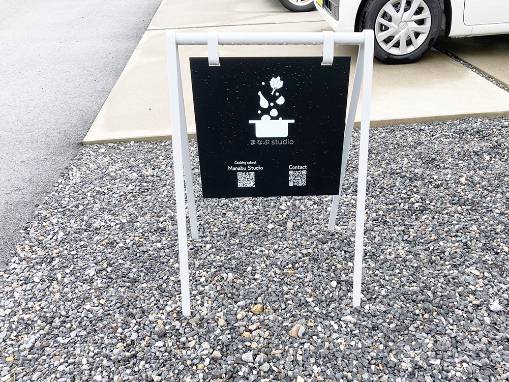 大垣市内の沢見さんのご自宅兼スタジオに到着!オシャレな看板がさりげなく置いてあります。