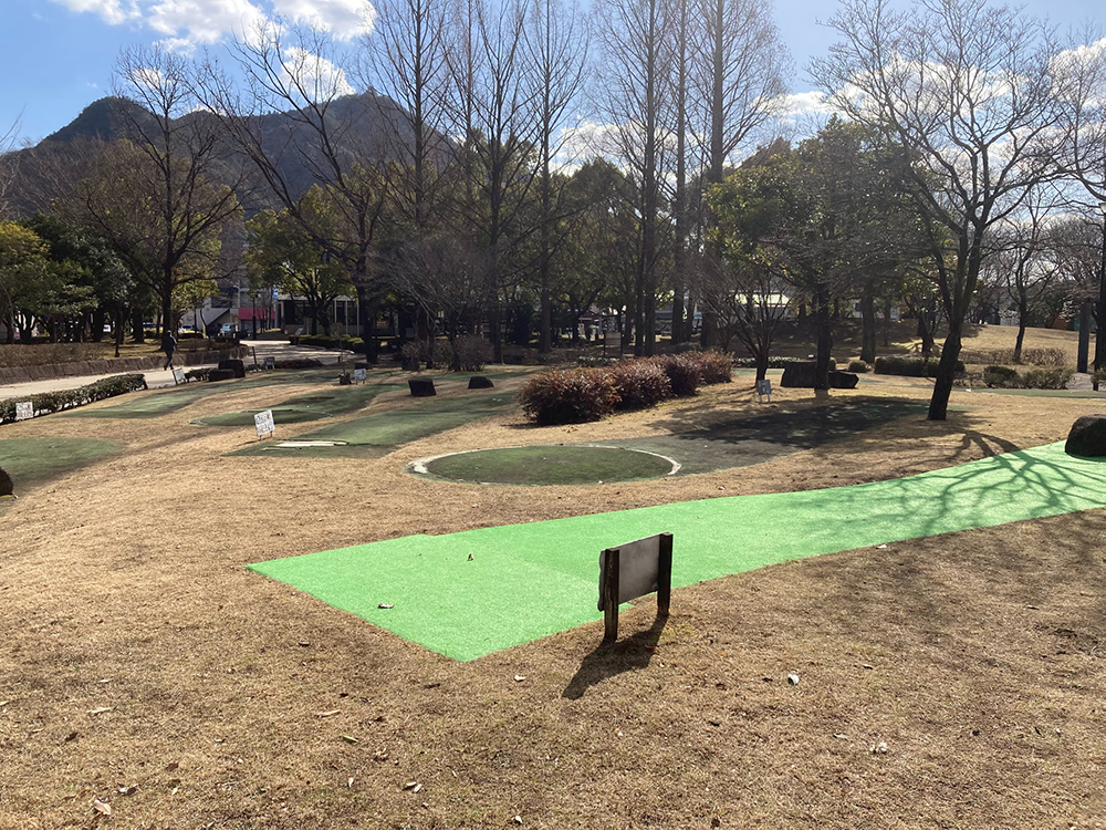 長良公園には9ホールのパターゴルフコースがあり、シンプルながらも難易度が高く、家族で楽しむのに最適です。道具は近くにある研修センターで無料で貸してもらえます。
